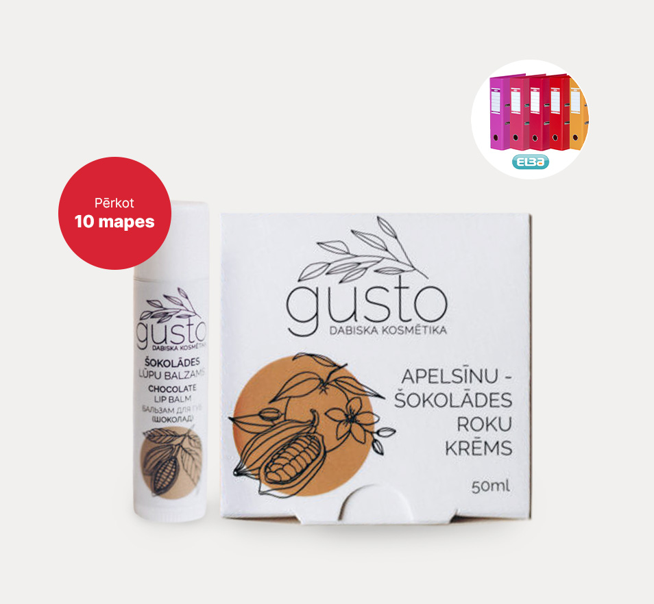 - vismaz 10 Elba mapes un saņem Gusto Apelsīnu - Šokolādes roku krēmu un Šokolādes lūpu balzāmu;