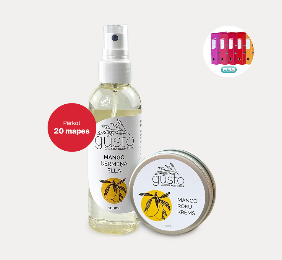 - vismaz 20 Elba mapes un saņem Gusto Mango ķermeņa eļļu un roku krēmu dāvanā!