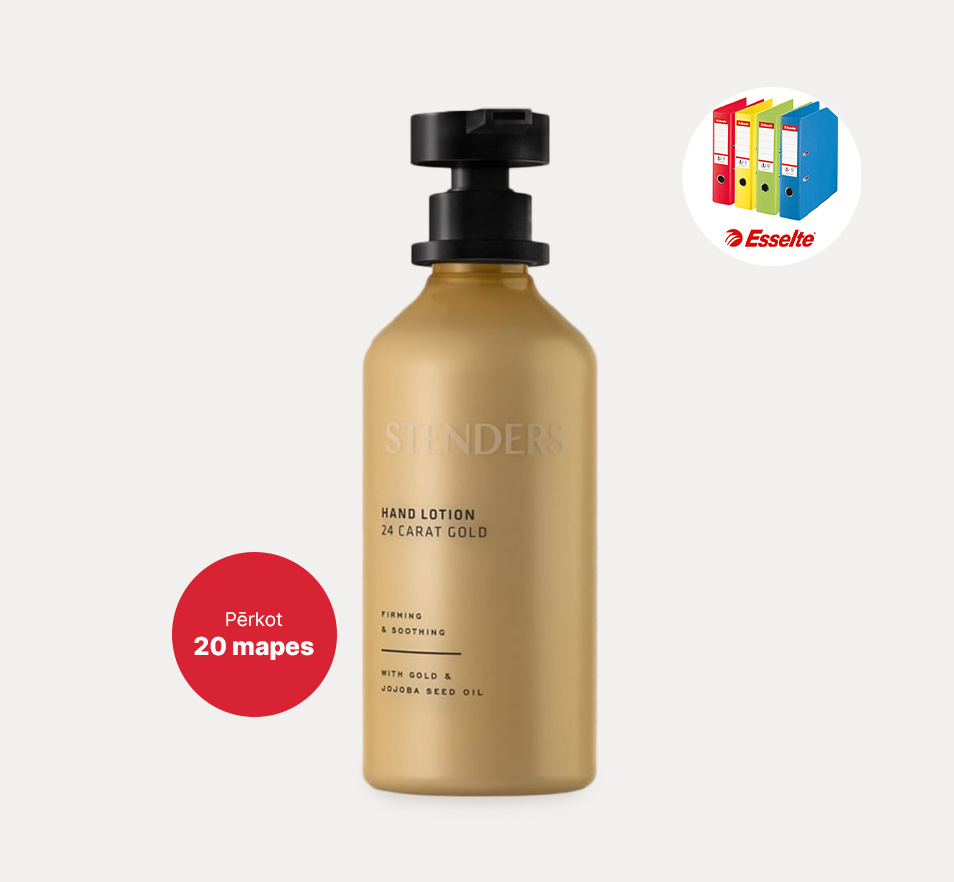 - vismaz 20 Esselte mapes un saņem Stenders losjonu roku kopšanai “24 karātu zelts” (245ml) dāvanā!
