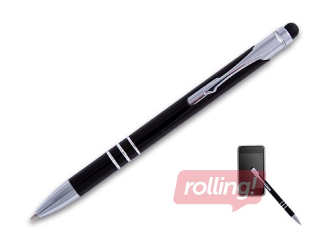 Automātiskā pildspalva ar metāla klipsi, metāla korpuss, līnijas biezums 0.8 mm, mainams serdenis. Izmantojama skārienjūtīgiem ekrāniem.