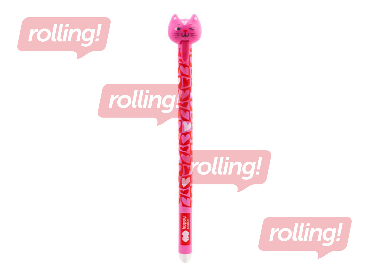 Dzēšama gēla pildspalva ar jautriem kaķu motīviem uz rotējošā vāciņa korpusa kaķu mīļotājiem.