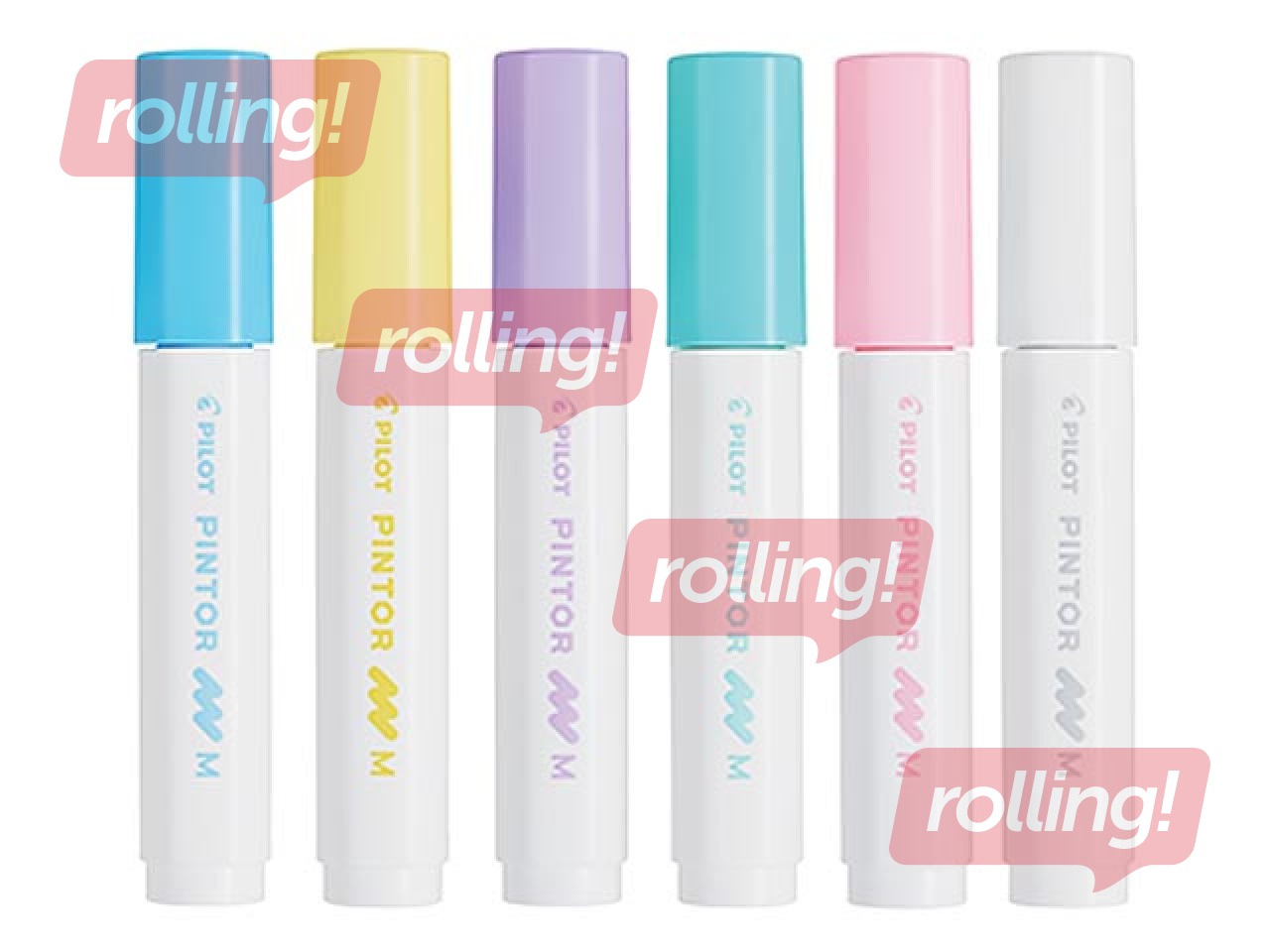 Permanento marķieru komplekts Pilot Pintor, 6 pasteļkrāsas (dzeltena, zaļa, zila, violeta, rozā, balta)