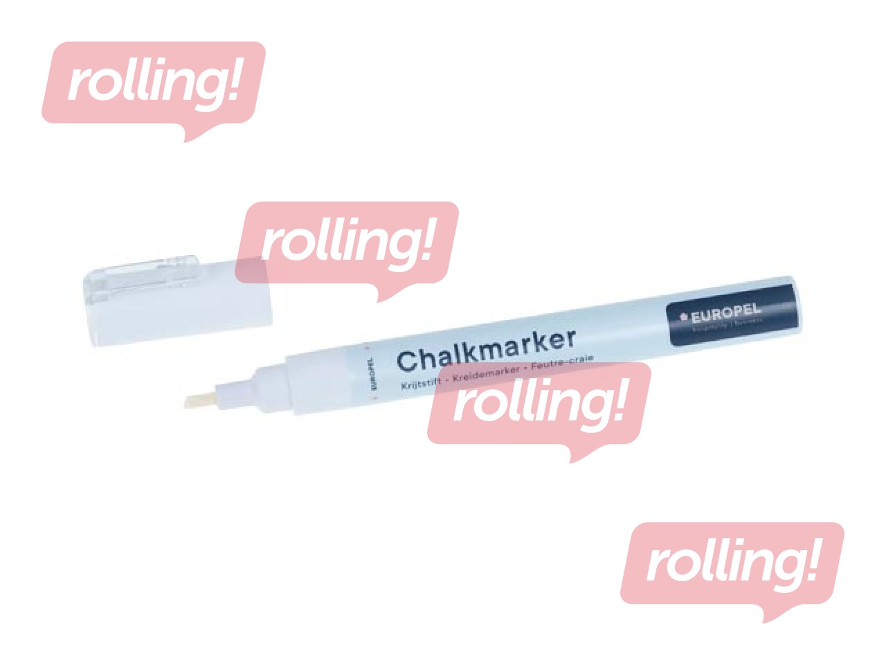 Šķidrais krīta marķieris 3 mm, balts. Ūdens bāzes tinte, bez smaržas un droša lietošanai bērniem. Piemēroti jebkurai gludai neporainai virsmai (stikls, keramika, plastmasa, tāfele, logs utt.). Tintes sūknēšanas sistēma nodrošina vienmērīgu rakstīšanu. Viegli notīrāmi no neporainām virsmām ar sausu vai mitru drānu.