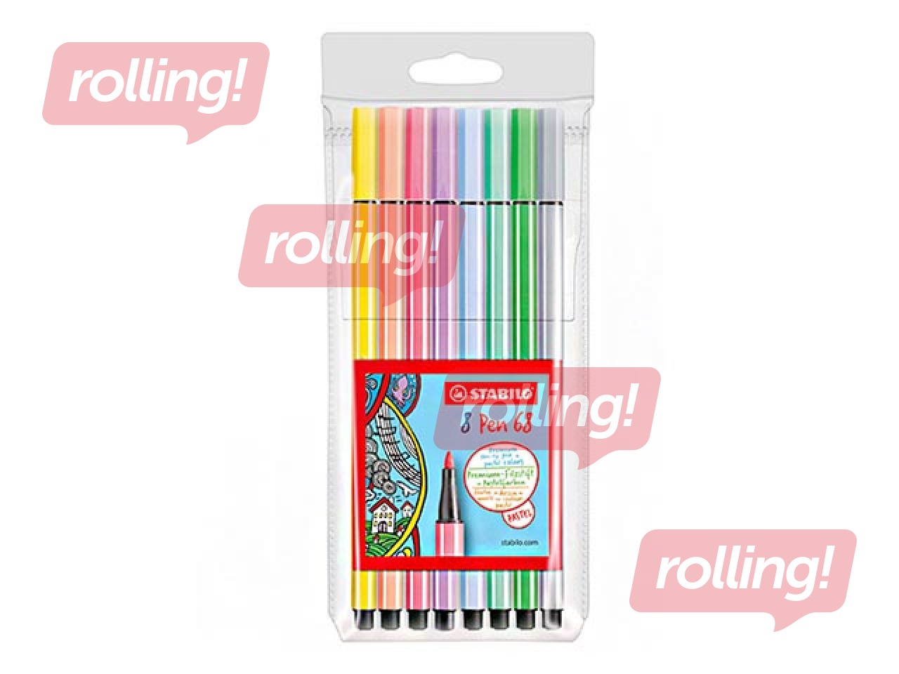 Flomāsteri STABILO Pen 68, 8 pasteļkrāsas, 1 mm