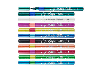 Komplektā ir 9 marķieri + 1 "burvju" marķieris, kas kā burvju nūjiņa mainīs zīmējuma krāsu. Krāsojiet uz papīra un pēc tam izmantojiet "burvju" marķieri, lai mainītu krāsu: melna uz sarkanu, brūna uz zaļu, tumši zaļa uz gaiši zaļu, zila uz pelēku, tumši zila uz zilu, purpursarkana uz tumši zilu, tumši rozā uz gaiši rozā, sarkana uz oranžu un oranža uz dzeltenu.