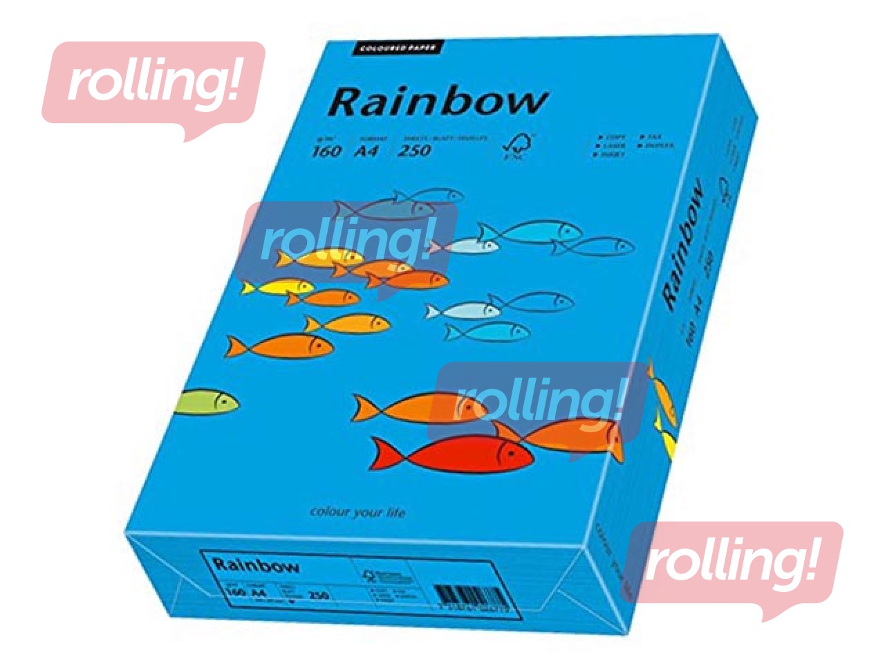 Papīrs Rainbow ir nepārklāts krāsainais papīrs caurspīdīgā iepakojumā, piemērots visa veida printeriem.