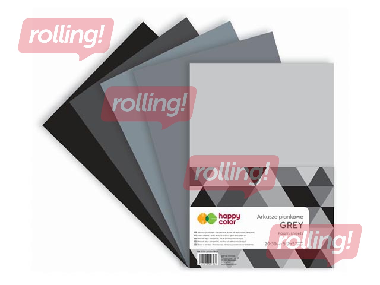 Putu loksnes Happy Color, spīdīgas, Grey, A4, 5 loksnes, 5 krāsas