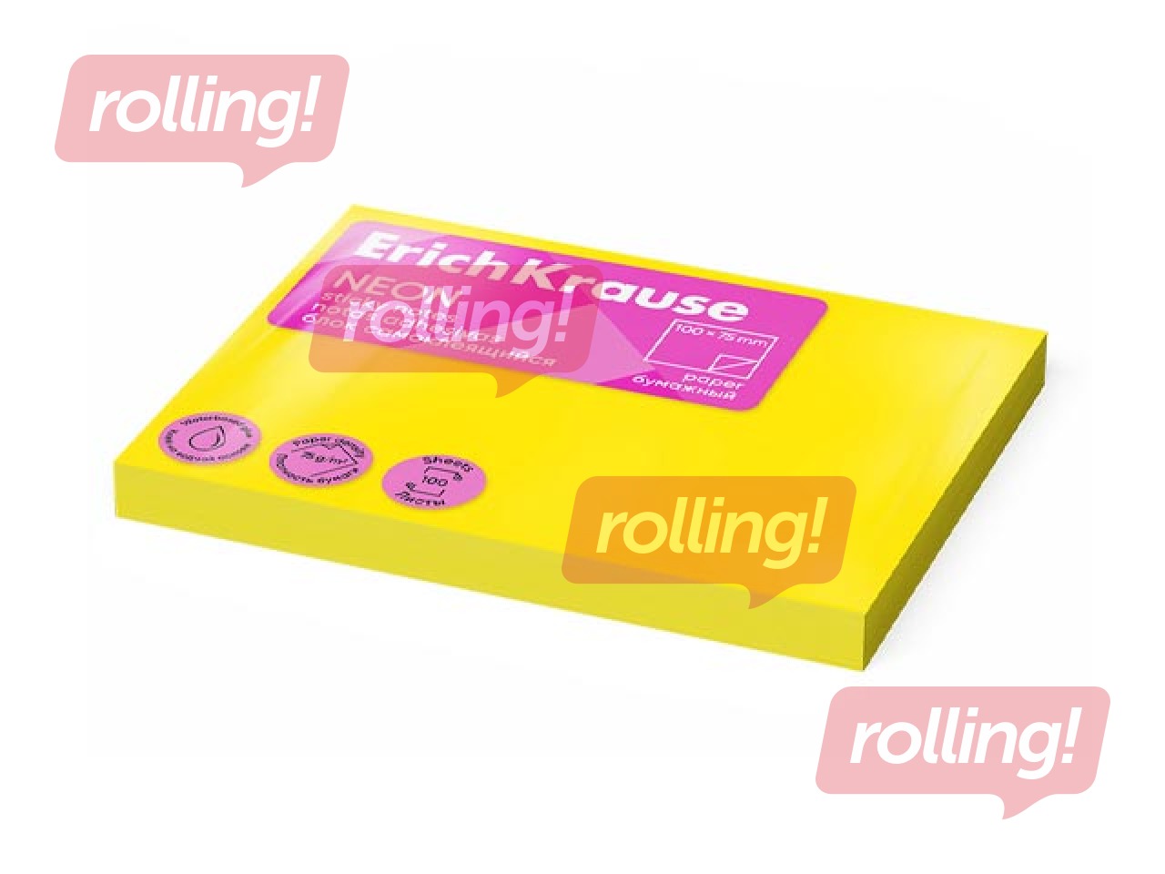 Līmlapiņas ErichKrause, neona dzeltenas, 100x75mm, 100 lapiņas