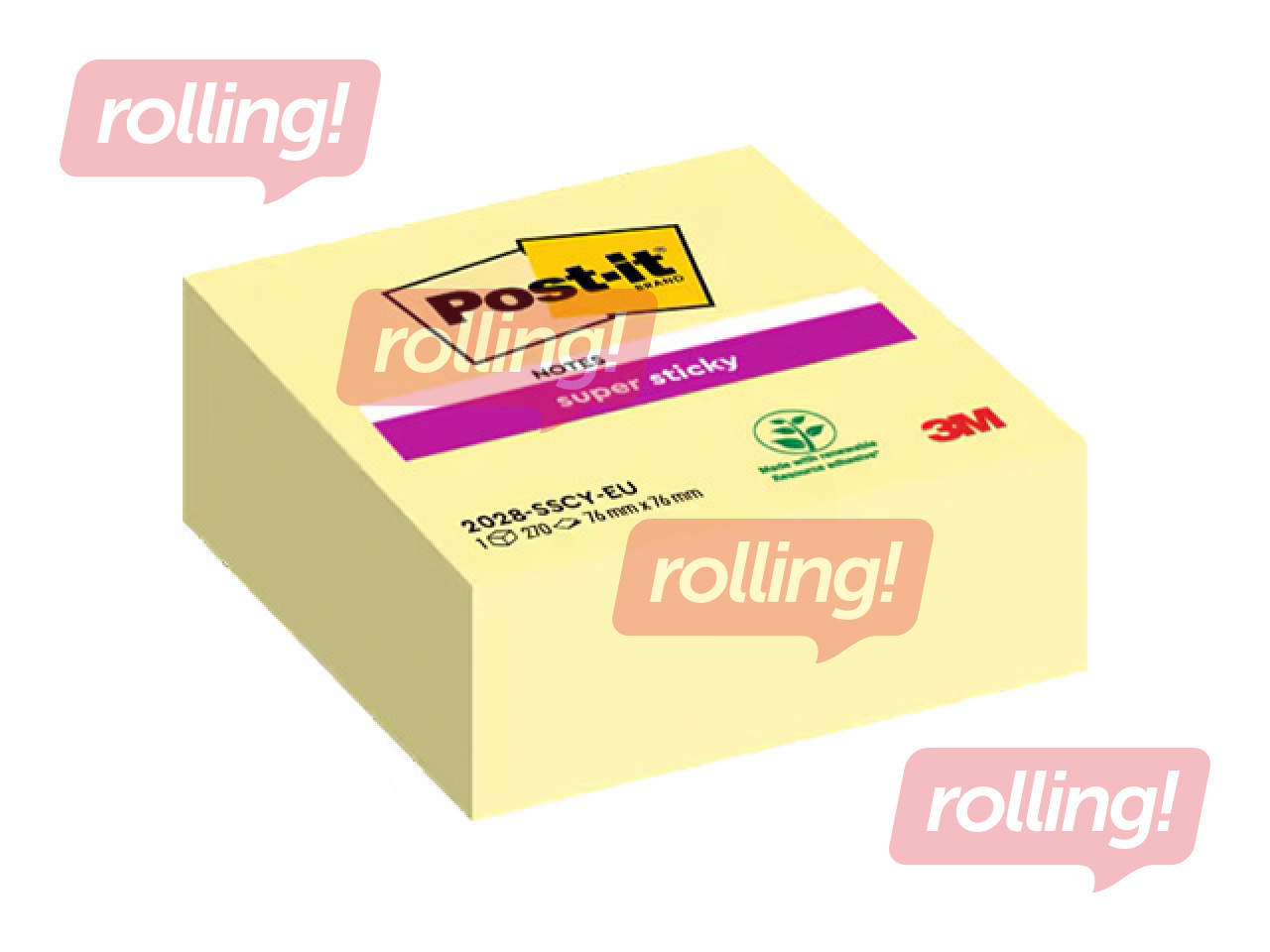 Līmlapiņas Post-it Super Sticky paredzētas piezīmēm, atgādinājumiem un ziņojumiem uz dažādām virsmām, nodrošinot 2x spēcīgāku līmēšanas spēku salīdzinājumā ar Post-it® Original Notes. Tās ir īpaši piemērotas vertikālām vai grūtāk pielīpošām virsmām, piemēram, monitoriem, durvīm un sienām. Lapiņu izmērs ir 76x76mm, komplektā 270 gab. kubā. Tās izgatavotas no PEFC sertificētām papīra šķiedrām, un līme satur 60% atjaunojamu izejvielu no auga, kas atjaunojas katru gadu, nodrošinot ilgtspējīgāku izvēli ikdienas biroja darbam.