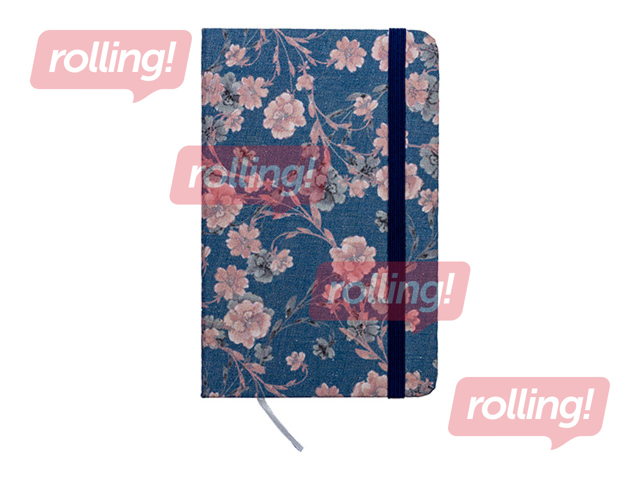 Piezīmju grāmata cietos vākos Flowers, ar gumiju, zila, A7, 80 lapas