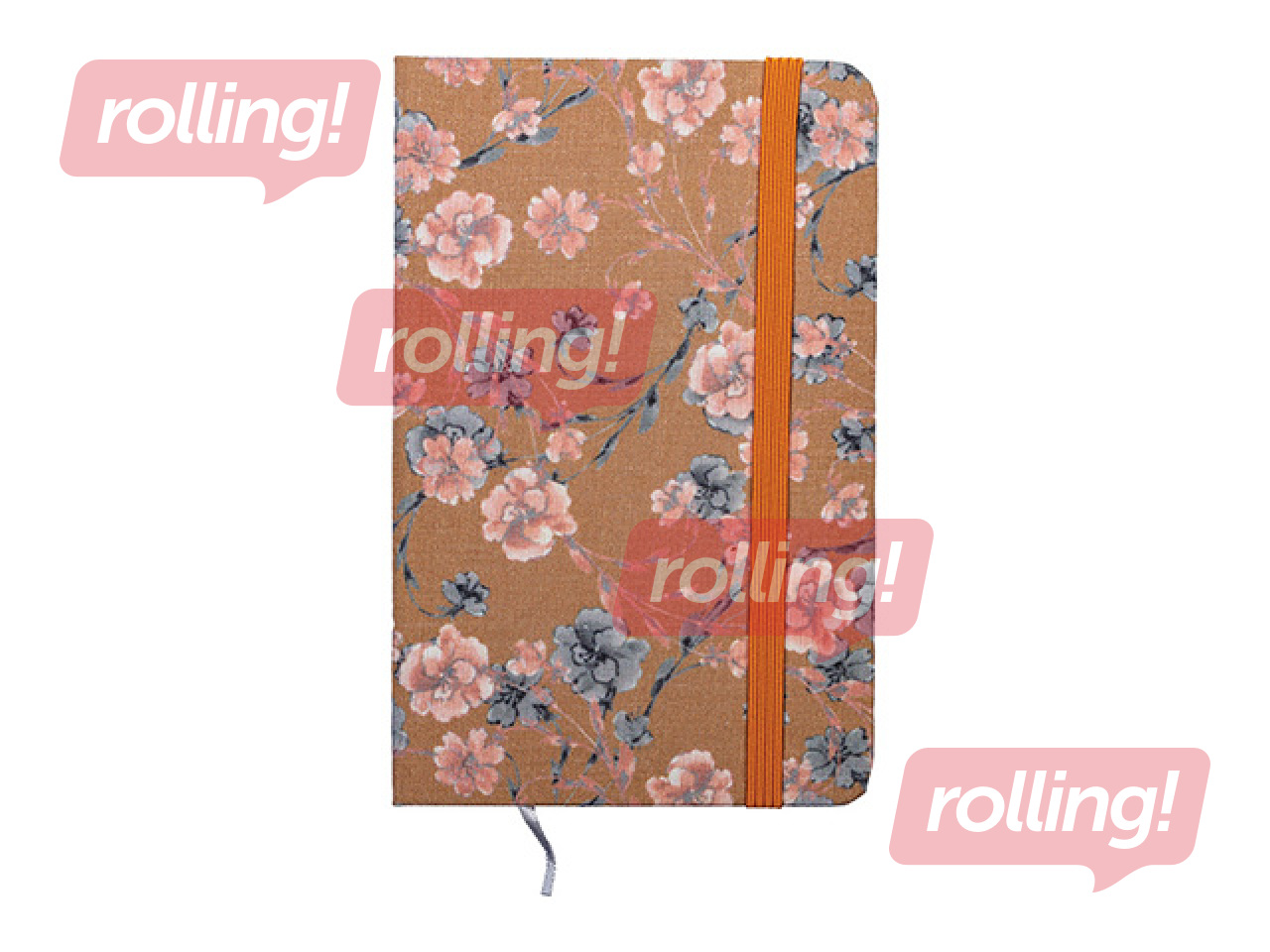 Piezīmju grāmata cietos vākos Flowers, ar gumiju, oranža, A7, 80 lapas