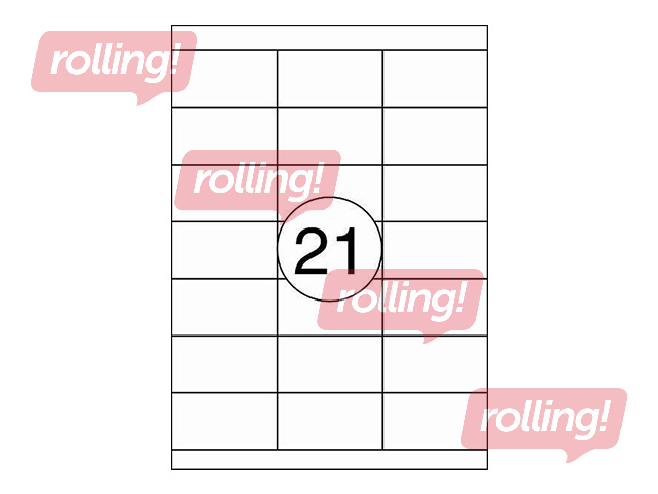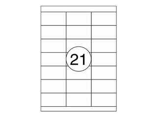 Pašlīmējošas baltas uzlīmes, piemērotas apdrukai ar tintes, lāzerprinteriem, kopēšanas tehnikai vai rakstīšanai ar roku. Uz A4 lapas 21 uzlīme. Iepakojumā 100 lapas.