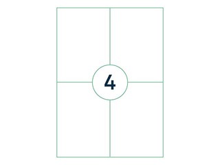 Pašlīmējošas baltas uzlīmes, piemērotas apdrukai ar tintes, lāzerprinteriem, kopēšanas tehnikai vai rakstīšanai ar roku. Uz A4 lapas 4 uzlīmes. Iepakojumā 100 lapas.