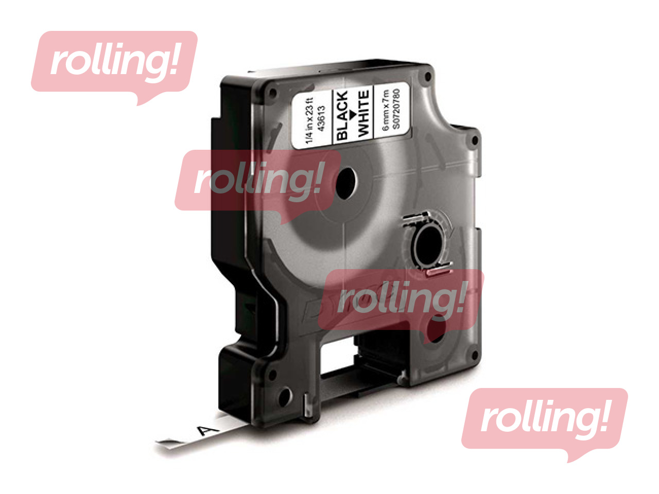 Marķēšanas lente DYMO D1, 6mm x 7m, melni burti uz balta fona