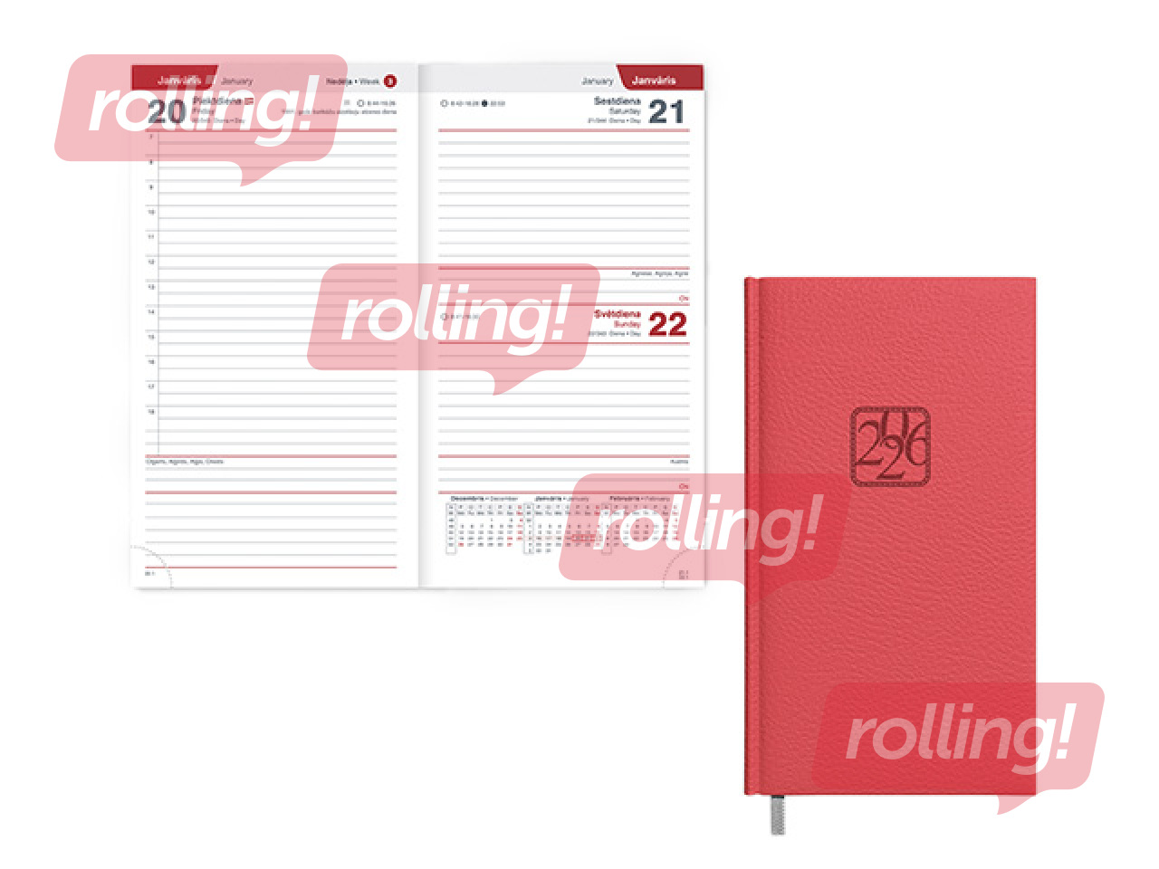 Papildinformācija: Polsterēti mākslīgās ādas vāki, grāmatzīme, cietais sējums, perforēti noplēšami lapu stūrīši.