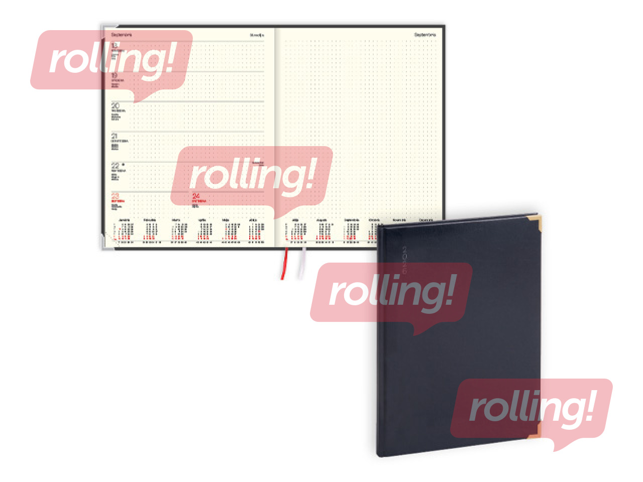 Polsterēti basis vāki ar gadskaitļa uzspiedumu uz 1. vāka.