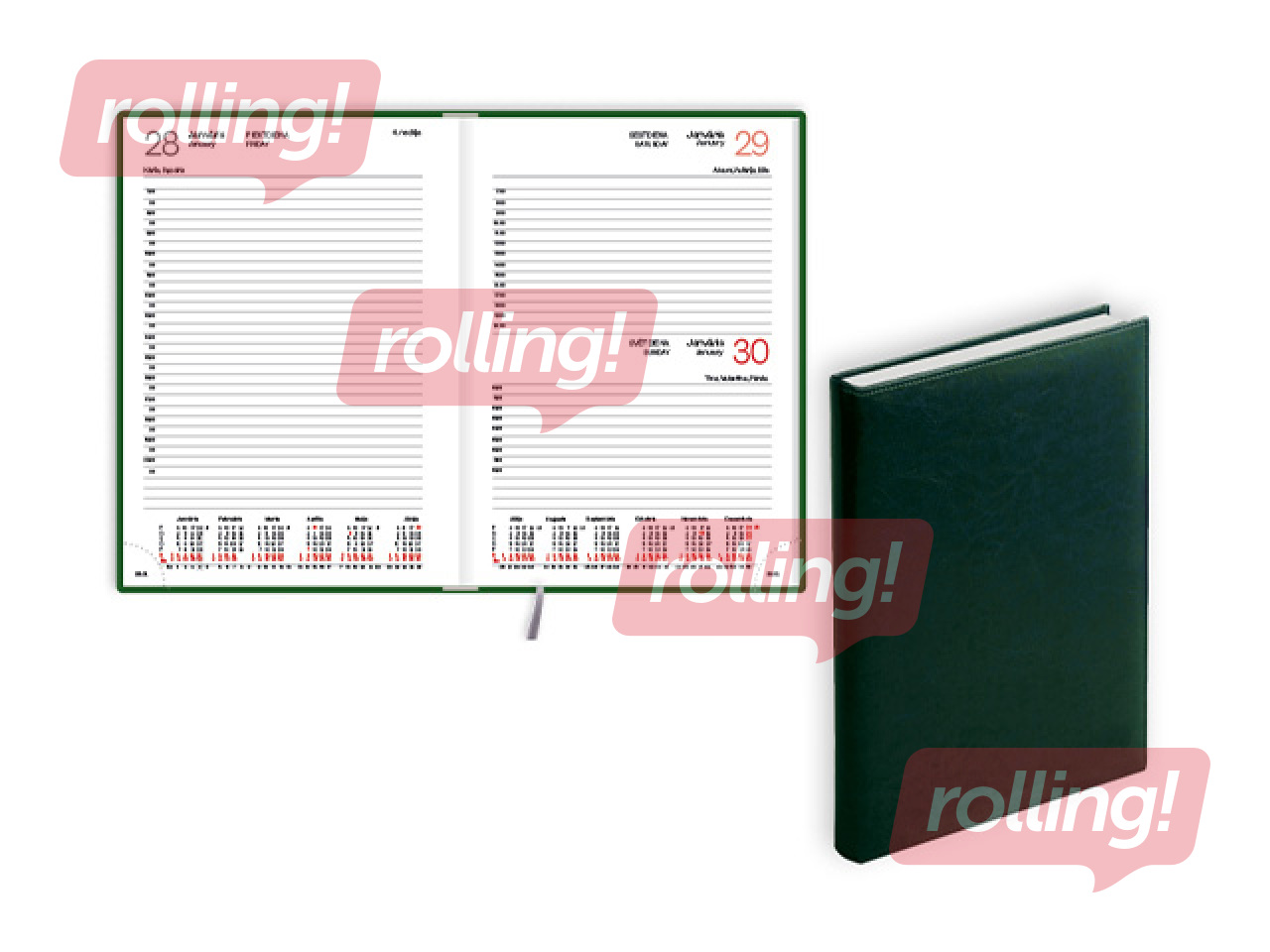 Dienasgrāmata Manager, A5, mākslīgā āda, zaļa