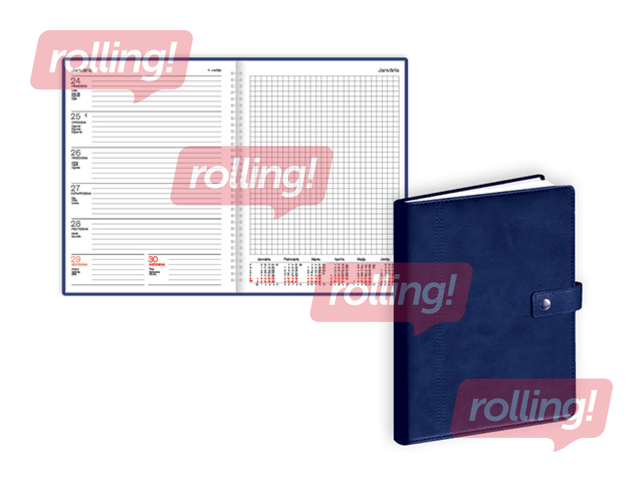 Apdare: FSC sertificēts papīrs, maināma kalendāra un adrešu daļa, spirāle. Polsterēti mākslīgās ādas vāki.