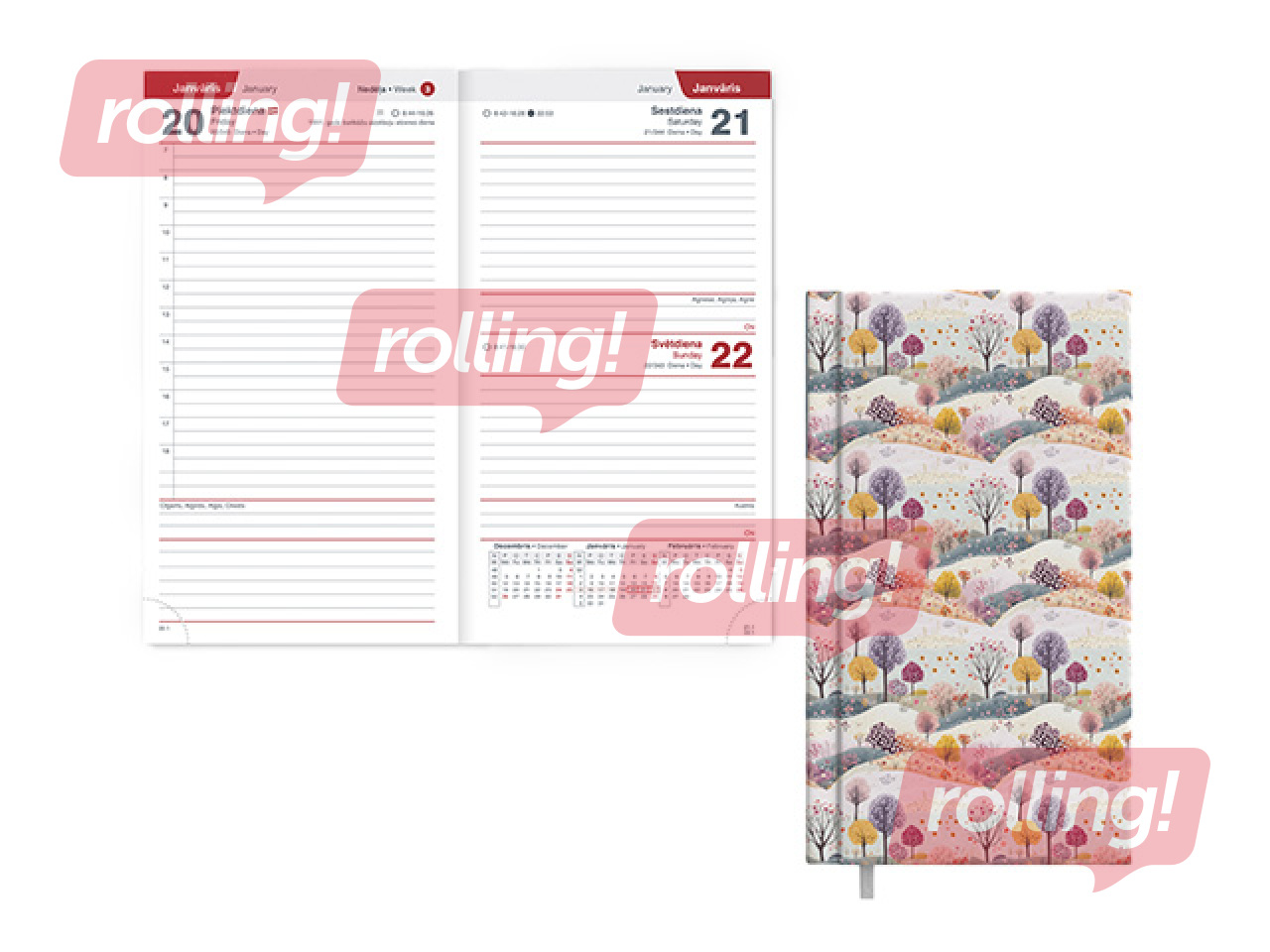 Papildinformācija: Polsterēti mākslīgās ādas vāki, grāmatzīme, cietais sējums, perforēti noplēšami lapu stūrīši.