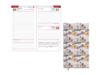 Apraksts: Plānotājos NEW LINE ir tabulas kalendārs, gada plāns, viena diena lappusē, nedēļu numerācija, valsts svētku un atzīmējamās dienas, karogu dienas, 38 citu valstu svētku dienas, norādīta pāreja uz vasaras un ziemas laiku, gadalaiku sākums, saullēkta un saulrieta laiki, mēness fāzes, zodiaka zīmju maiņas dienas, svarīgi telefona numuri, attāluu tabula, tālsarunu kodi, pasaules laiki, izmēru un mērvienību tabulas, kontaktu un piezīmju lapas.