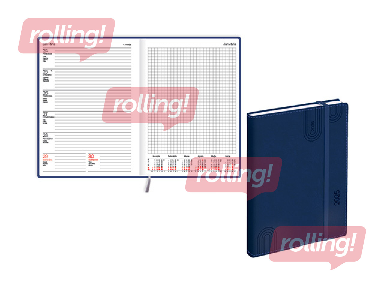 Kalendārs: viena nedēļa atvērumā + vieta piezīmēm.