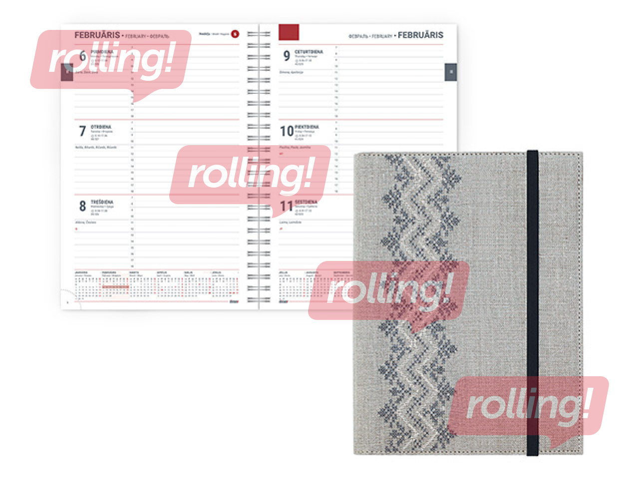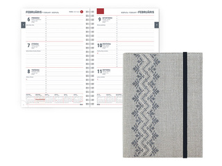 Papildinformācija: Vāki no 100% lina ar etnogrāfisku rakstu, ar spirāli, perforēti noplēšami lapu stūrīši.