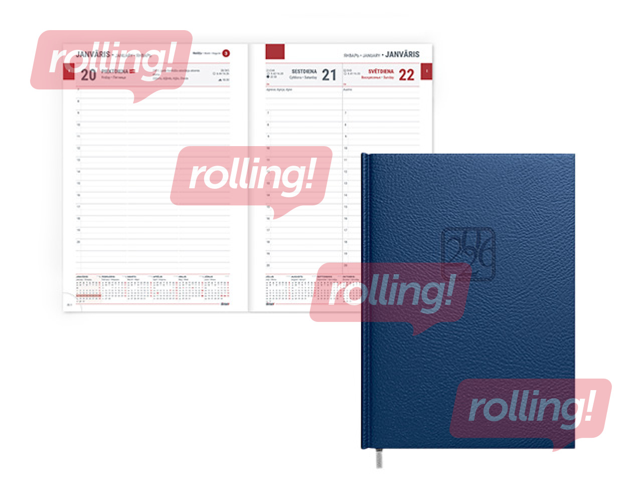Visās A5 formāta dienasgrāmatās ir tabulas kalendārs, gada plāns, nedēļu numerācija, valsts svētku un atzīmējamās dienas, karogu dienas, vārda dienas, 38 citu valstu svētku dienas, norādīta pāreja uz vasaras un ziemas laiku, gadalaiku sākums, saullēkta un saulrieta laiki, mēness fāzes, zodiaka zīmju maiņas dienas, kontaktu un piezīmju lapas.