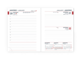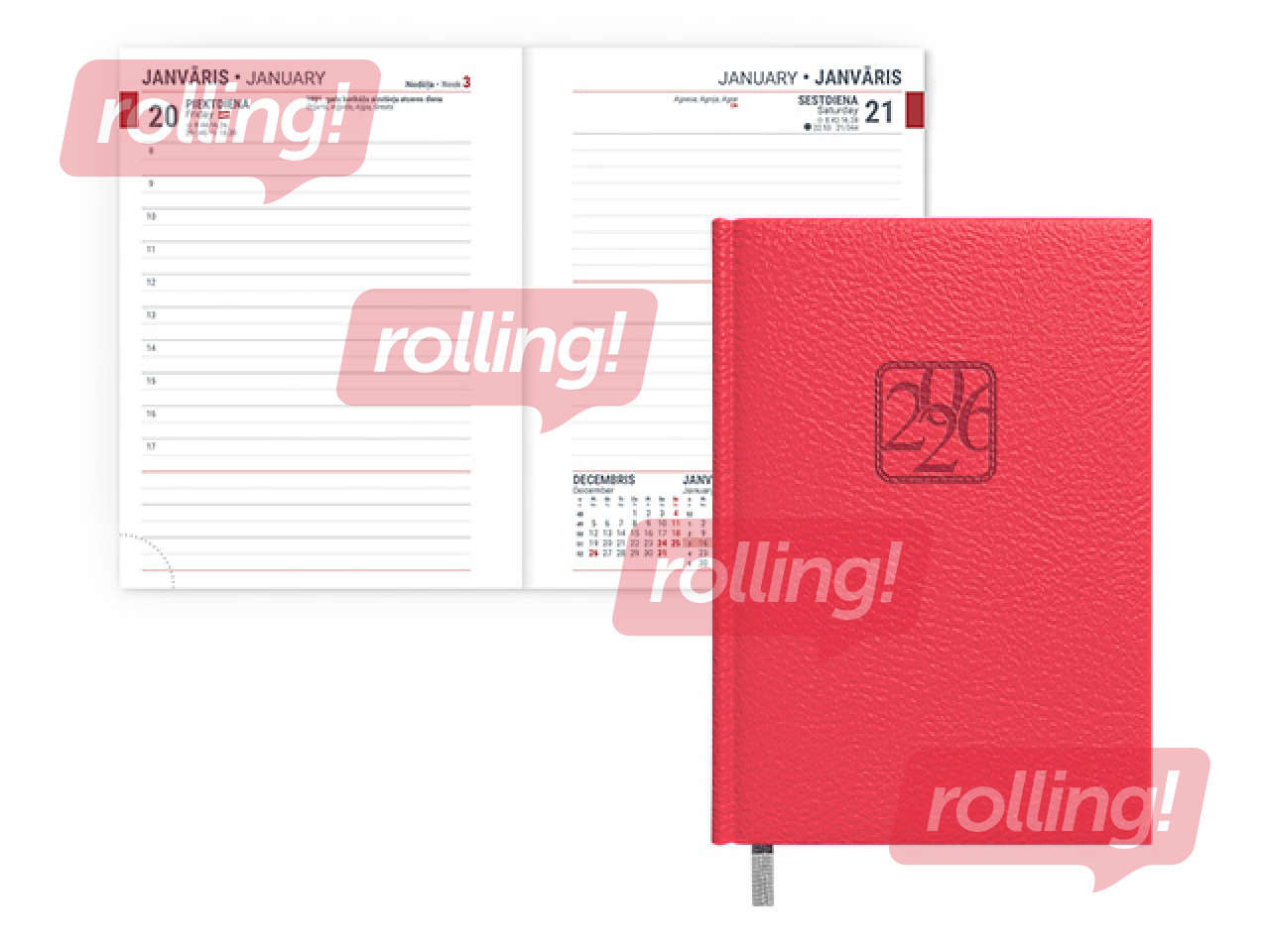 Papildinformācija: Polsterēti mākslīgās ādas un krāsaini dizaina vāki, grāmatzīme, cietais sējums, perforēti noplēšami lapu stūrīši.