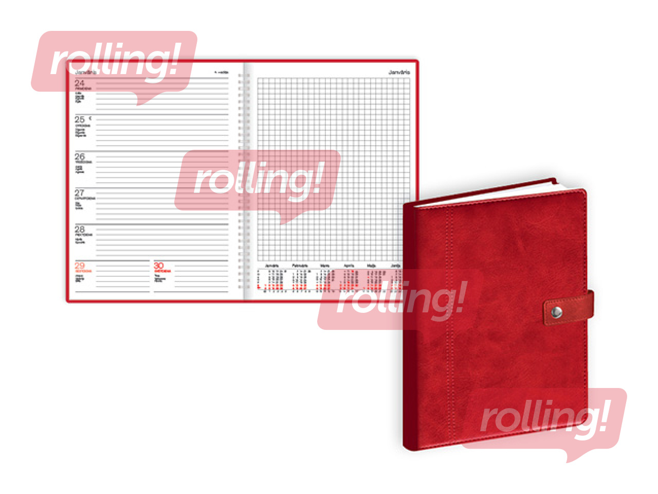 Apdare: FSC sertificēts papīrs, maināma kalendāra un adrešu daļa, spirāle. Polsterēti mākslīgās ādas vāki.