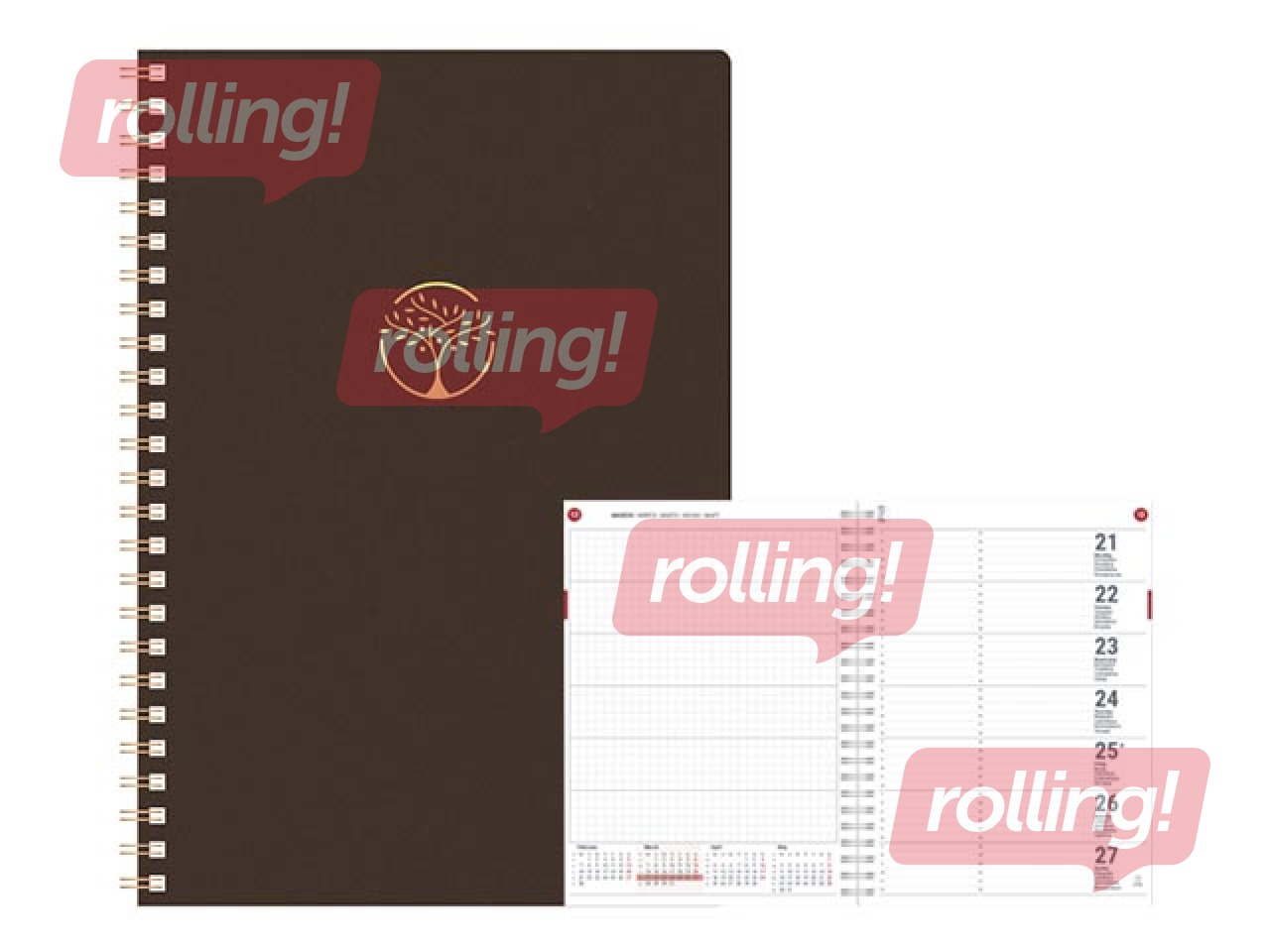 Dienasgrāmata Unika Spiral Cardboard, A5, tumši brūna