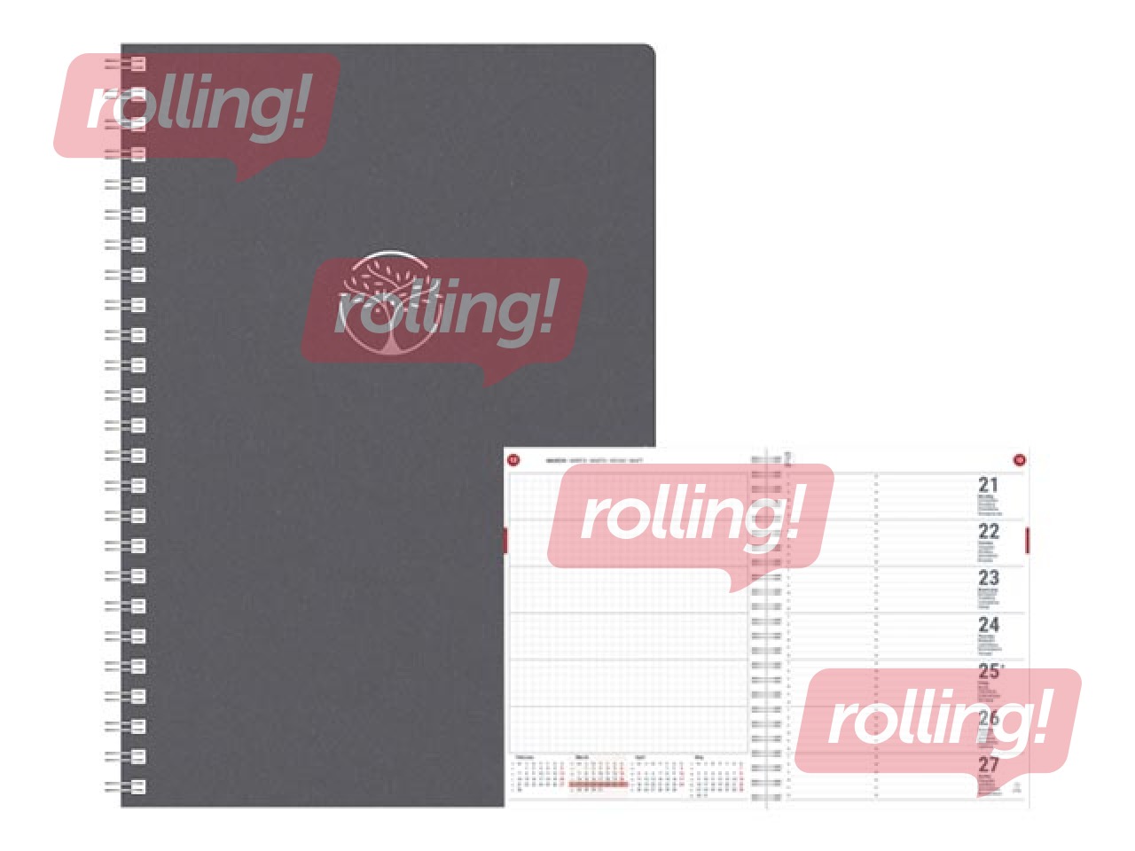 Dienasgrāmata Unika Spiral Cardboard, A5, tumši pelēka