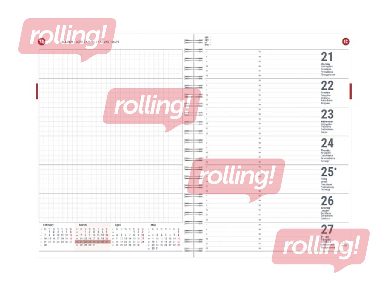 Dienasgrāmata Unika Spiral Cardboard, A5, sarkana