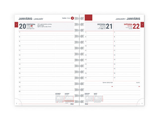 Apraksts: Visos plānotājos TEMPO DIENA ir tabulas kalendārs, gada plāns, viena diena lappusē, nedēļu numerācija, valsts svētku un atzīmējamās dienas, karogu dienas, vārda dienas, 38 citu valstu svētku dienas, norādīta pāreja uz vasaras un ziemas laiku, gadalaiku sākums, saullēkta un saulrieta laiki, mēness fāzes, zodiaka zīmju maiņas dienas, svarīgi telefona numuri, attālumu tabula, tālsarunu kodi, pasaules laiki, izmēru un mērvienību tabulas, kontaktu un piezīmju lapas.