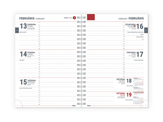Apraksts: Visos plānotājos TEMPO DIENA ir tabulas kalendārs, gada plāns, viena diena lappusē, nedēļu numerācija, valsts svētku un atzīmējamās dienas, karogu dienas, vārda dienas, 38 citu valstu svētku dienas, norādīta pāreja uz vasaras un ziemas laiku, gadalaiku sākums, saullēkta un saulrieta laiki, mēness fāzes, zodiaka zīmju maiņas dienas, svarīgi telefona numuri, attālumu tabula, tālsarunu kodi, pasaules laiki, izmēru un mērvienību tabulas, kontaktu un piezīmju lapas.