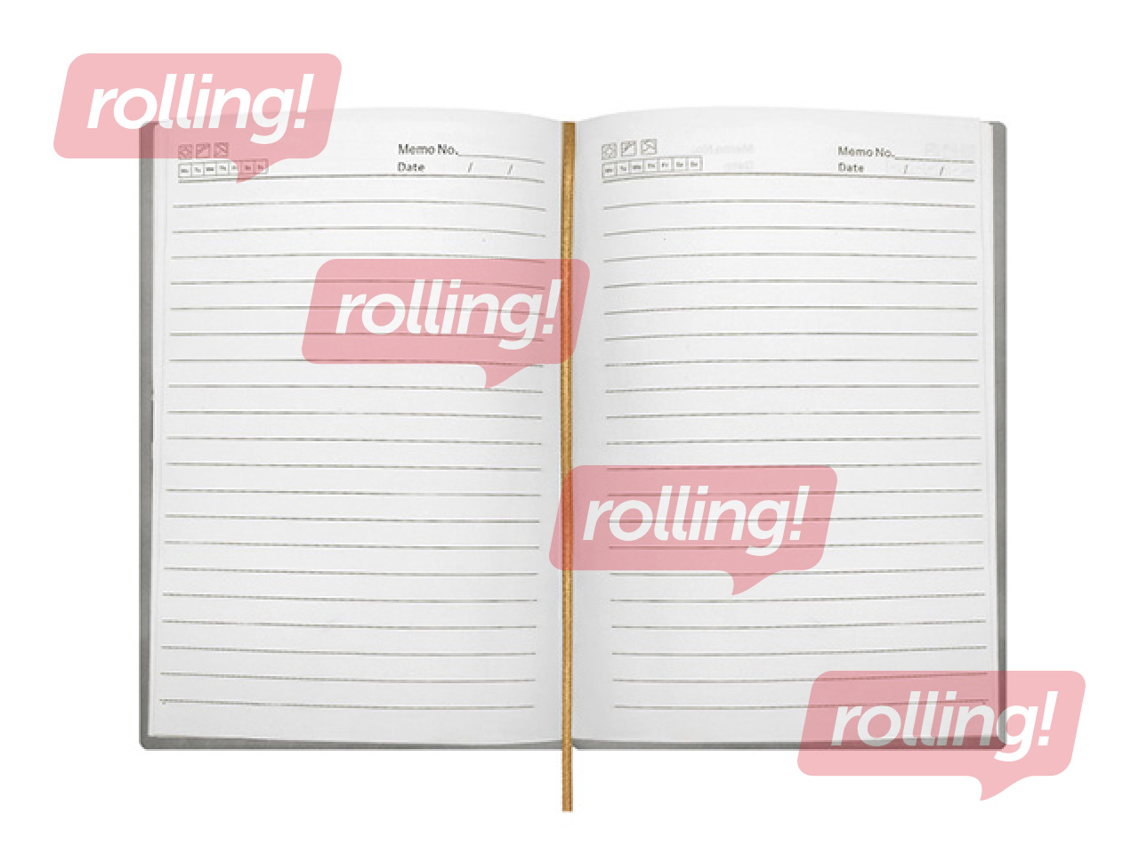 Dienasgrāmata - plānotājs mīkstos PVC pārklājuma vākos, A5 formāta, ar neilona grāmatzīmi, bez datumiem, 120 līniju lapas, angļu valoda.