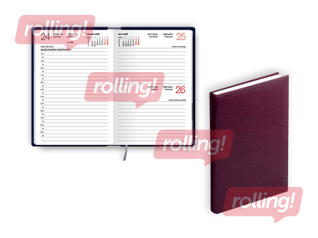 Kabatas kalendārs Mono, A6, mākslīgā āda, bordo