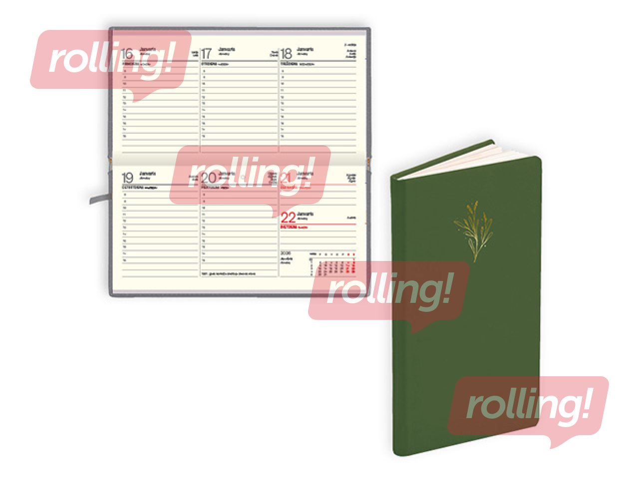 Kalendārs: viena nedēļa atvērumā.