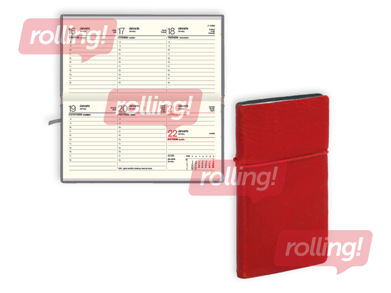 Kabatas kalendārs Lady, elastīgie ādas vāki, sarkans