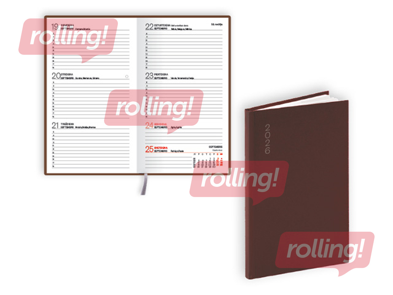 Kalendārs: viena nedēļa atvērumā, divās valodās (latviešu, angļu). FSC sertificēts papīrs, grāmatzīme.