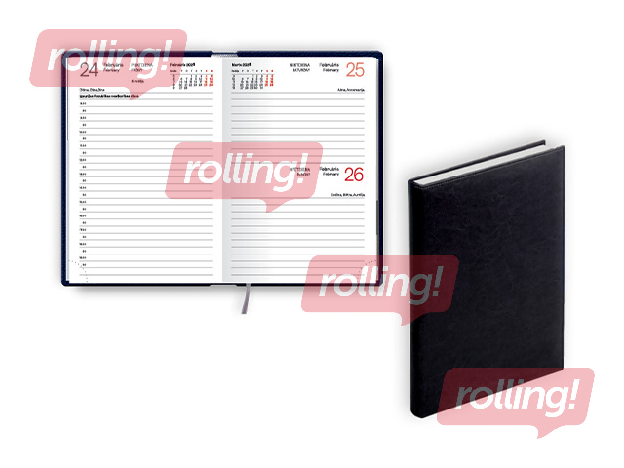Kabatas kalendārs Mono, A6, mākslīgā āda, melns