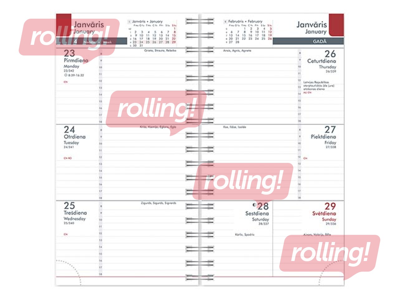 Kabatas kalendārs Midi Flex Nedēļa, sarkans