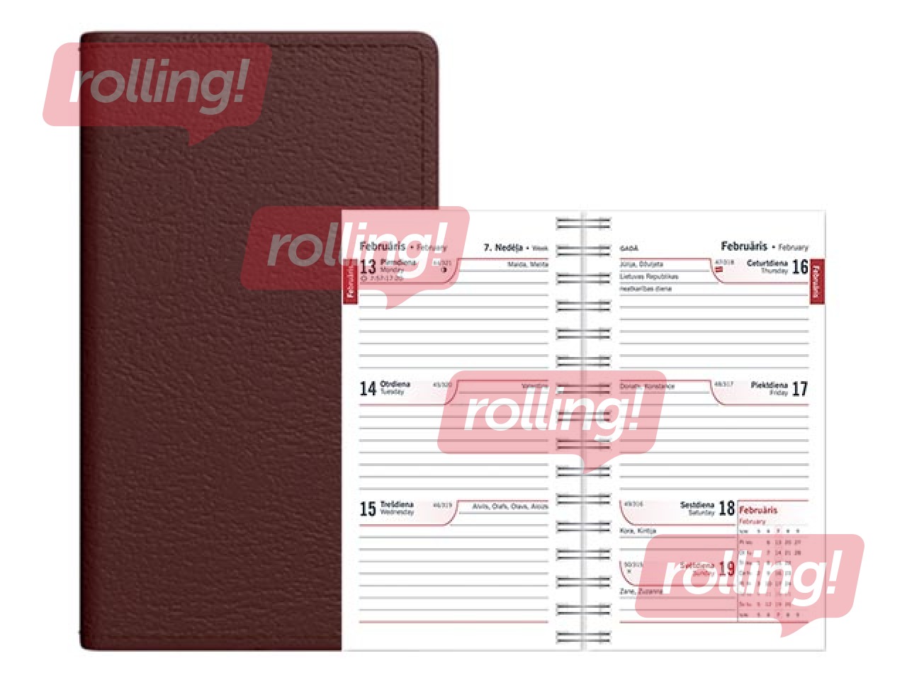 Kabatas kalendārs Mini, mākslīgā āda, tumši brūns