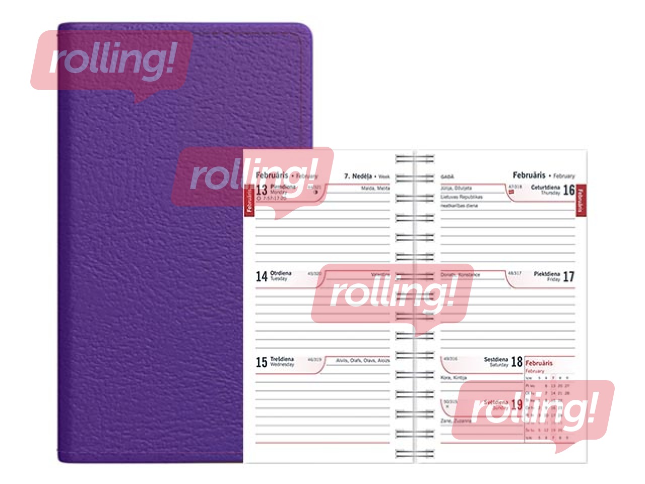 Kabatas kalendārs Mini, mākslīgā āda, ceriņkrāsas
