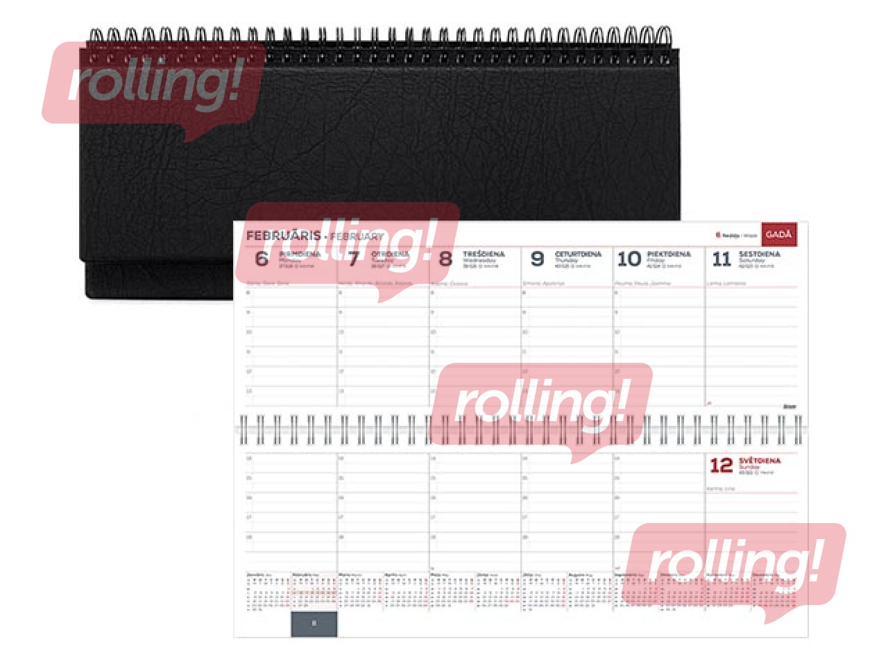 Kalendārs: 2 valodas ( latviski, angliski). Nedēļas atvērums.