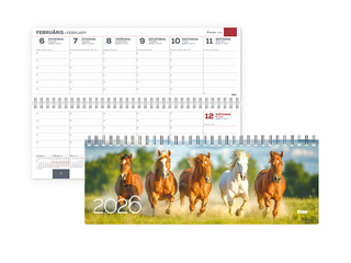 Visos galda kalendāros MEMO ir gada plāns, viena nedēļa atvērumā, nedēļu numerācija, valsts svētku un atzīmējamās dienas, karogu dienas, vārda dienas, norādīts gadalaiku sākums, saullēkta un saulrieta laiki, mēness fāzes, zodiaka zīmju maiņas dienas, kontaktu lapas.
