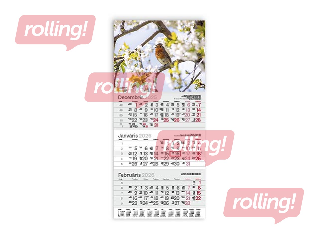 Kalendārs: trīs mēneši lapā (iepriekšējais, kārtējais un nākamais)