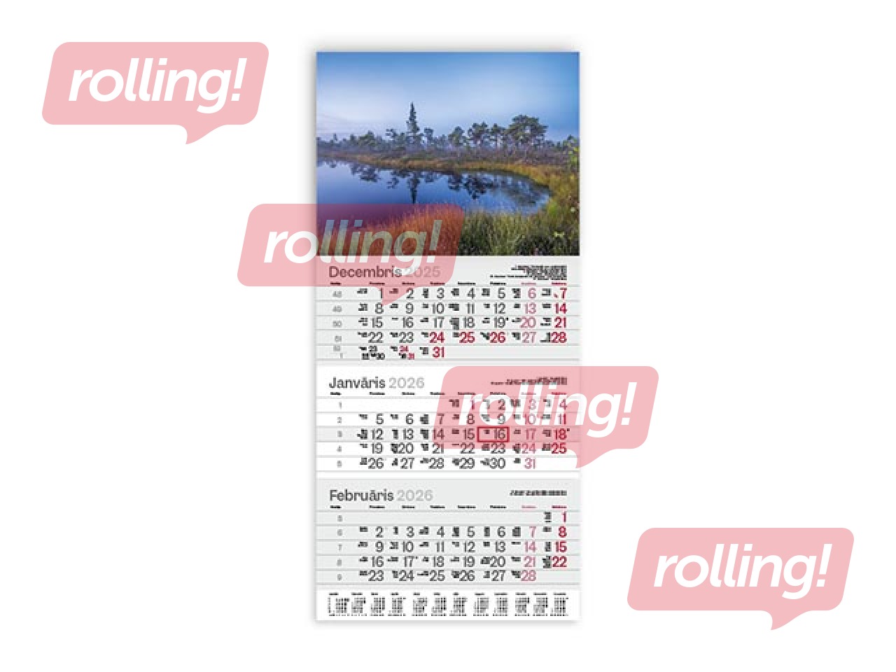 Kalendārs: trīs mēneši lapā (iepriekšējais, kārtējais un nākamais)