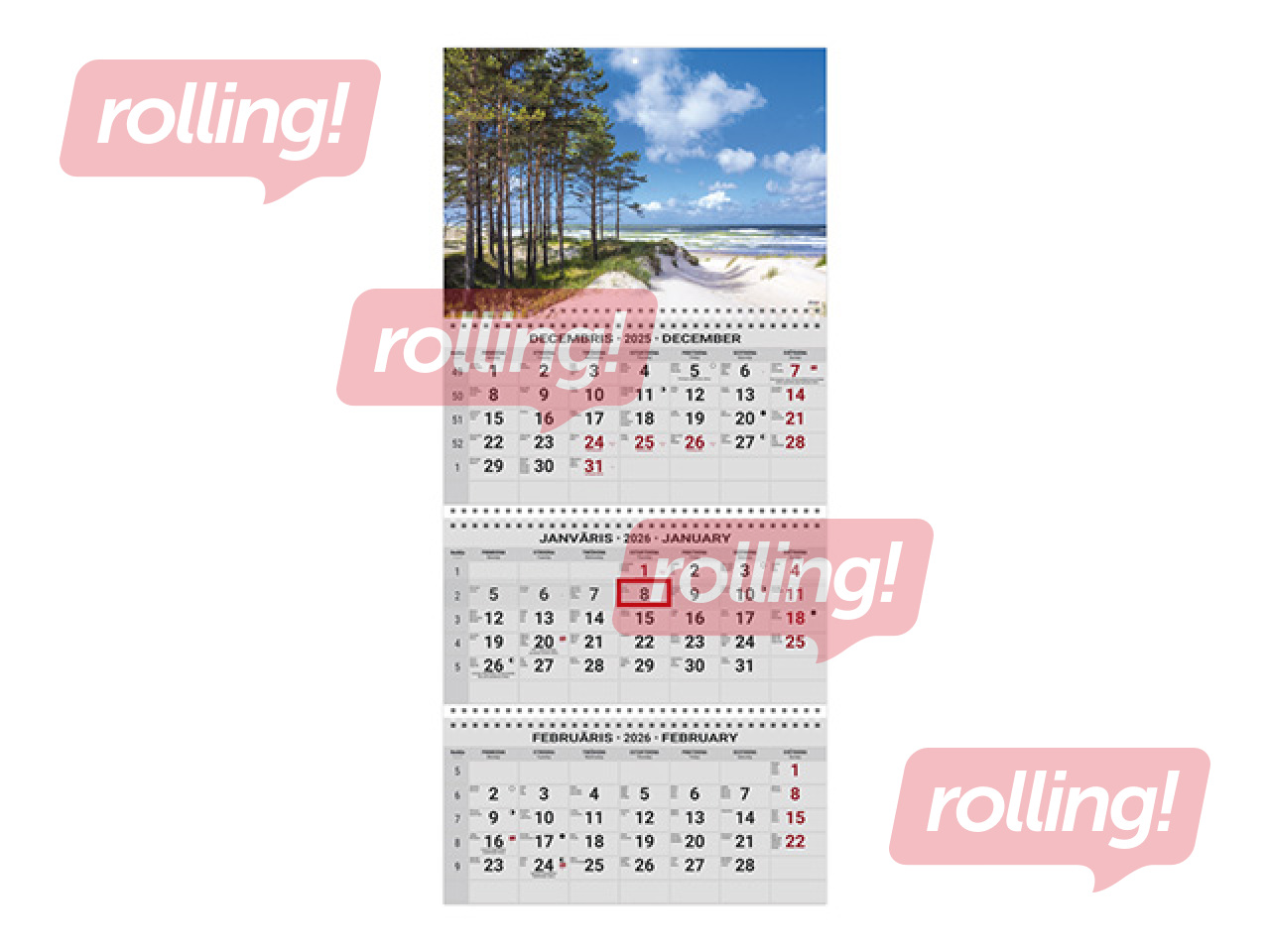 Personalizācijas iespējas: OFFICE sienas kalendāri ar uzņēmuma logo, reklāmas attēlu un reklāmas joslu.