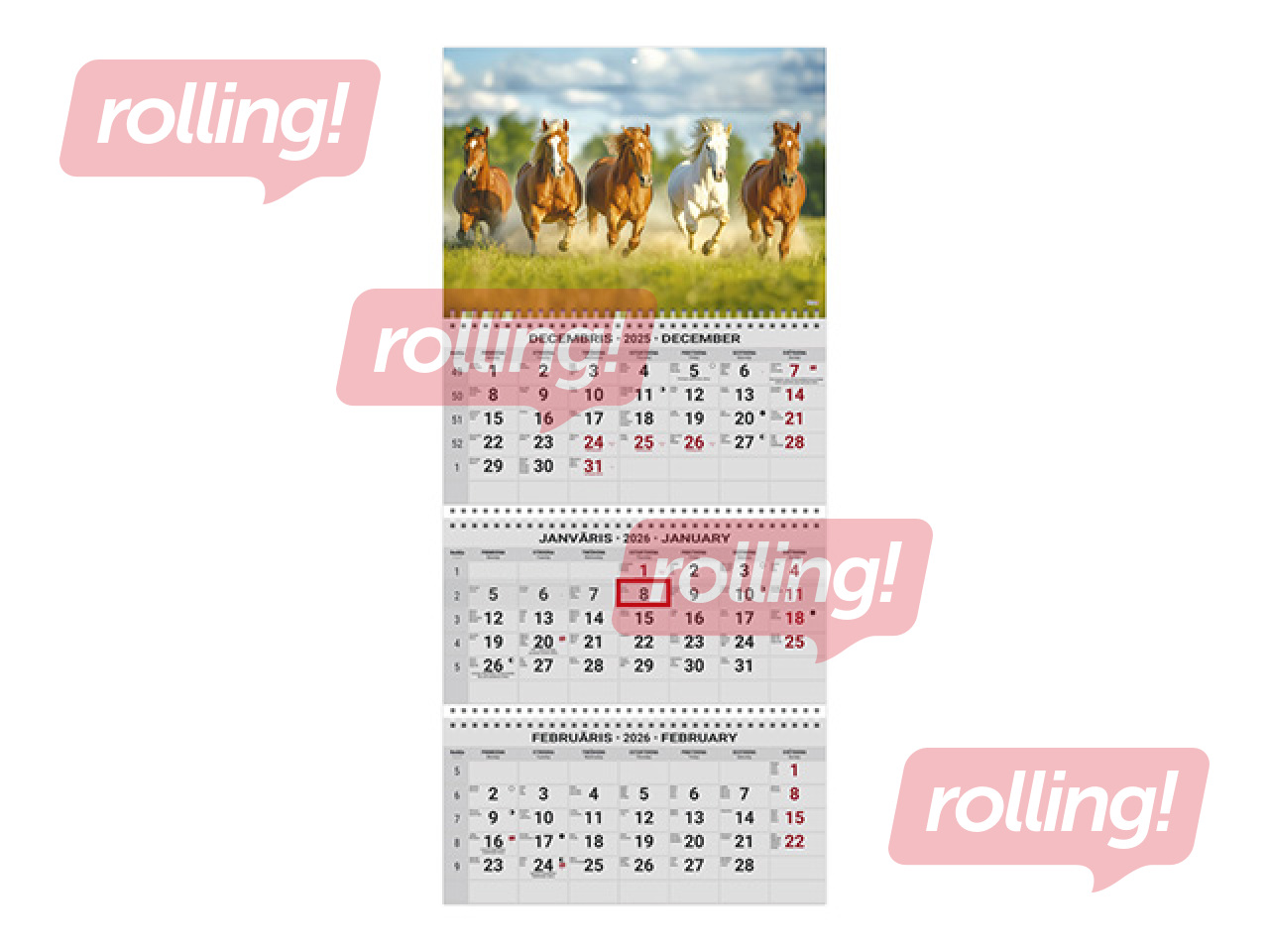 Personalizācijas iespējas: OFFICE sienas kalendāri ar uzņēmuma logo, reklāmas attēlu un reklāmas joslu.