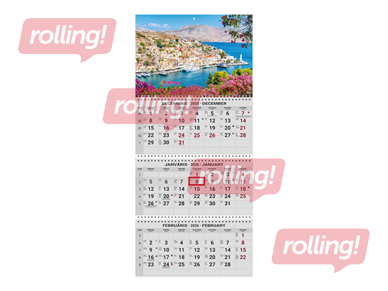 Personalizācijas iespējas: OFFICE sienas kalendāri ar uzņēmuma logo, reklāmas attēlu un reklāmas joslu.